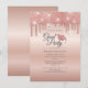 Convite para Festa de formatura Glitter Dourada para Rosa 2025. Você pode personalizar isso facilmente clicando no botão "Personalizar". Apresentando um moderno design de gotejamento brilhante e boné formando com roteiro e tipografia popular.