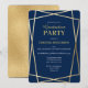 Convites Festa de formatura Elegante Blue Dourado Geométric