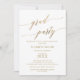 Este elegante convite para festa de formatura de caligrafia em ouro é perfeito para uma festa de formando simples. A design neutra apresenta uma carta minimalista decorada com a tipografia falsa de ouro romântica e caprichosa. Nota: Este design não apresenta folha de ouro real. É um gráfico de alta qualidade feito para se parecer com folhas de ouro.