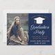 Um convite de graduação de fotografia personalizada clássico em azul-marinho moderno e ouro para segundo grau, faculdade ou universidade da classe de 2025. Personalize com seu nome de escola e sua classe de graduação sob a adorável caligrafia para um convite de fotos de formando personalizado elegante com seu retrato de mais velho.