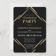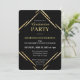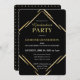 Comemore sua graduação em 2025 com a família e amigos com este elegante convite à festa de formatura de ouro preto. Este design apresenta um estilo formal em preto e ouro com sotaques geométricos dourados.
