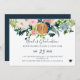 Pêssego cor-de-rosa esbranquiçado, pêssego de marfim e marinho azul flores boêmicas buquês com folhagem verde-sábio, um pequeno boné de formando e um círculo de cobre monograma metálico esbatido fazer um convite à celebração de glama horizontal com um roteiro de tipografia moderno e totalmente editável. +++++++++++++ Fácil de personalizar com sua foto e detalhes em ambos os lados!
