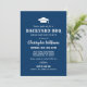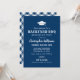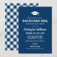 Celebre com estilo descontraído com este convite de formatura navy com ícone de chapéu de formatura e letras rústicas em negrito “Churrasco no Quintal”. Perfeito para uma casa aberta, churrasco ou festa de verão. Personalize o nome do formando, data, hora, local e RSVP. O verso apresenta um padrão xadrez navy coordenado.