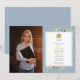 Com delicadas folhas de verdura em aquarela sobre um fundo azul poeira, este convite de festa de formatura elegante pode ser personalizado com a foto do formando e detalhes da celebração. Criado por Thisisnotme©