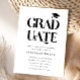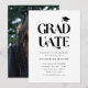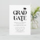 Cartão de modelo de convite para festa de formatura moderno e simples, com texto tipográfico que diz "formando" em negrito com uma ilustração de um boné de formatura. Você pode adicionar a foto do formando na parte traseira da placa. Excelente para segundo grau e formando universitário.