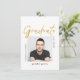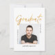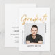 Celebre seu Graduado com este Convite de Convocatória de Graduação Simples Moderno em preto e branco, com uma foto central e a palavra "Graduate" em escrita moderna FAUX Dourado. Este convite limpo é perfeito para um graduado como seu filho que se forma na universidade ou faculdade.