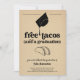 Tacos gratuitos (e formatura). Desfrute de um convite para a formatura que põe o holofote em tacos! Trabalho de arte é desenhado à mão.