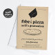 Pizza grátis (e graduação). Desfrute de um convite para a formatura que põe o holofote em... pizza! Trabalho de arte é desenhado à mão.
