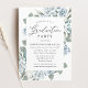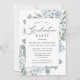 Celebre seu marco com estes elegantes convites para festas de formatura florais com o nome do formando e detalhes de festas maravilhosamente enquadrados por rosas azuis e brancas poeirentas, hífenes e eucalipto verde. O sofisticado design floral de aquarelas adiciona um toque de eterno, fazer esses convites de graduação azul empoeirados perfeitos para segundos graus e formandos universitários. Personalize com seus detalhes de evento para uma celebração memorável e na moda.