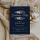 Um belo cartão de convite para formatura com cores azuis e brancas e marinho e flores de aquarela. Os detalhes do texto e a imagem podem ser personalizados.
