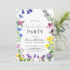 Este elegante convite à festa de formatura apresenta um fundo branco com flores silvestres em rosa, azul e amarelo. O verso apresenta um fundo verde claro com padrões brancos de bolinhas. Personalize para suas necessidades. Você pode encontrar mais produtos correspondentes na minha loja.