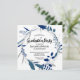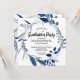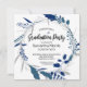 Convites de festa de formatura floral azul escura ou convites de cerimônia para personalizar o seu dia especial. Flores azuis profundas, folhas e botões com uma bela fonte de script e serifa. Personalize com seu próprio nome, ano de graduação e outros detalhes.