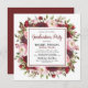 Convites de festa de formatura quadrada com fundo branco plano que pode ser mudado para qualquer cor, um conjunto de flores florais de cor vermelha de marsala, borgundy & blush, cor-de-água rosa, e um modelo moderno de formando.