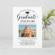 Celebre seu graduado com este convite de festa de formatura elegante, apresentando um script de caligrafia "Graduado" ornamentado, acentuado por um ícone de gorro de graduação, um retrato de finalista e todos os detalhes da festa em um layout branco limpo. O design simples e tipográfico deixa a bela caligrafia e sua foto em destaque com uma parte de trás do cartão azul real coordenada. Texto totalmente personalizável em todo o conteúdo.