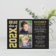 Celebre seu formando com este convite de festa de formatura ousado, apresentando uma tipografia "Turma de" superdimensionada com um ano marcante exibido ao lado de um layout de duas fotos, uma do passado e outra do presente. A mistura esportiva de letras maiúsculas, caligrafia e números estilo universidade dá a este design um sentimento espirituoso e enérgico que destaca o quanto seu formando evoluiu. O texto totalmente personalizável facilita a personalização de todos os detalhes da sua celebração.