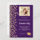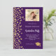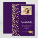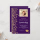Um convite moderno e elegante para a Festa de formatura. Um fundo roxo decorado com confete de ouro falso. Personalize e adicione fotos, um nome e detalhes da festa. Texto branco.
