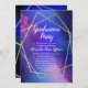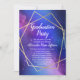 Linhas de ouro geométricas e formas de cristal, lindas nebulosas roxas e azuis no espaço exterior pintaram trabalho de arte de cor d'água com estrelas noturnas num céu noturno cristalino. Perfeito para uma celebração celestial ou moderna. A nebulosa na moda arco-íris contrasta com as constelações geométricas e com a galáxia espacial externa. Excelente para o formando de ciência ou fã de astronomia que ama a lua e o universo cósmico estrelado.