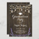 Convite festa de formatura - Madeira Marrom rustica. Design de estilo russo com madeira escura, flores de lavanda e luzes de fadas.