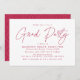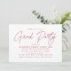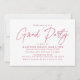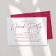 Convites de diversão e festas de formatura modernas com "Partido Formando" em um roteiro magenta de tendências com seus detalhes de festa de formatura mostrados abaixo. O convite simples de festa de formatura inverte-se para exibir um padrão geométrico magenta e branco pontilhado.