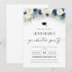 Marinho Azul e Rosas Brancas Convite Festa de formatura. Este na moda e elegante Convite para Festas de formatura apresenta lindas cores d'água Marinho Blue e White Roses pintadas manualmente. Localize itens correspondentes na Coleção de Rosas Marinhos Azul e Branca.