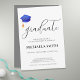 Convite para a graduação de segundos graus moderno e simples com ilustração de um boné de formatura azul marinho e tipografia elegante. Ilustrada e projetada por Patricia Alvarez.