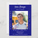 Personalize e adicione uma foto, nome, nome da escola, classe e detalhes da festa. fundo azul marinho, texto branco.