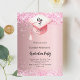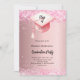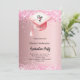 Um convite de formatura moderno e elegante. Um fundo degradê rosa-bege decorado com confetes rosa e um grande chapéu de formatura com borla. Personalize e adicione um nome e detalhes da festa.