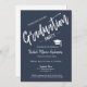 Crie um convite personalizado e esplêndido, chique e Festa de formatura minimalista para seu formando especial! Este convite apresenta um roteiro de caligrafia espaçoso e bonito com um fundo azul marinho. Você pode personalizá-lo facilmente com seu próprio texto e personalizá-lo de acordo com o seu gosto. Observe que "Graduação e -festa-" e o trabalho de arte de boné de formatura não podem ser editados. Nota complementar: O impressão de folha de ouro é um falso efeito de folha de ouro. Não é a folha de ouro a quente.