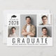 Anúncio de graduação e convite de festas modernos mínimos que incluem uma colagem de 4 fotos, "Formando" escrito na parte inferior em letras grandes e o seu ano de aula, nome e escola ou universidade em tipografia simples. Adicione os detalhes da parte no verso.