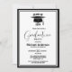 Convide seus amigos e entes queridos para sua festa de formatura com este convite minimalista negro.