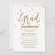 Convites para Festas de formatura de Confetti Vermelho de Script Dourado moderno.