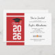 Adicione seu ano de formatura, nome e detalhes do local com data a este convite de formatura moderno com fundo vermelho e branco em negrito e tipografia preta usando nosso botão "Personalizar" acima