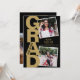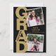 Este convite de festa de formatura moderno pode ser personalizado com fotos de seu formando 3 e detalhes de celebração em ouro sobre fundo preto. Projetado por Thisnotme©