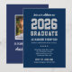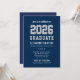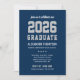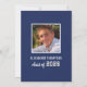Anuncie a sua classe de formando de segundo grau 2023 em estilo com este anúncio de graduação e convite de festas. Um cartão de dois lados apresenta um design simples e masculino com uma carta inspirada em jersey desportiva, perfeita para o seu estudante e atleta de varSIDADE. Marinho azul, cinza prateada e cores brancas. O espaço para incluir uma foto de mais velho do formando está incluído no verso. Todas as cores podem ser personalizadas.