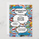 Um convite para a graduação inspirado na arte, inspirado em pop de revista, divertido e divertido, que coloca o wham, zap, pow em qualquer evento de celebração de formandos de super-heróis. Projetado por Thisnotme©