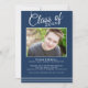 Adicione qualquer ano e nome para personalizar esta design elegante e moderna. Isto pode ser utilizado para qualquer formando - segundo grau, universidade, escola de formando, escola de medicina ou mesmo escola de comércio. A borda do marinho sobre uma foto de graduação com informações sobre a festa na frente.