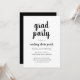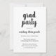 Convite simples de festa de formatura com um design clássico com "formando party" e o nome do formando com uma letra preta grossa sobre um fundo branco. O dorso é preto sólido. Um convite elegante com um talento minimalista moderno para um formando feminino.