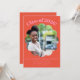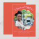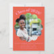 Convite de Festa de Formatura Moderno Rosa e Laranja com Foto em uma moldura de flor única.