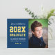 Celebre seu formando com este convite de festa de formatura ousado que apresenta números de ano em estilo de universidade superdimensionados e tipografia "Graduate" ao lado de um retrato de veterano. A frente combina "Parabéns ao nosso" em script com letras maiúsculas fortes para um sentimento espirituoso e comemorativo. A parte traseira apresenta um design listrado coordenado com todos os detalhes da sua festa. O texto totalmente personalizável torna a personalização fácil.