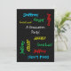 Que maravilhoso e divertido Convite à Festa de formatura! Na frente, seu texto se repete em diferentes fontes e cores em um fundo preto falso. Nome personalizado. O fundo tem o mesmo fundo e fontes divertidas. É fácil modificar frente e verso. Todos os Direitos Reservados © 2017 Marcia Socolik.