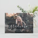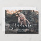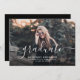 Comemore o formando com este convite personalizado de festa de formatura de fotos moderno, com a palavra "formando" em escrito branco, com a escola e o ano de graduação abaixo em letra branca sans serif. Substitua facilmente a imagem de amostra por uma foto do formando. Uma tela de gradiente preto ajuda a fazer o pop de texto. Perfeito para segundo grau ou formandos. O inverso apresenta o nome do formando e as informações da parte em texto branco em um plano de fundo preto.