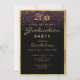 Um cartão de convite feminino e chic para uma festa de formatura 20xx. Glamorosa com elegante e moderno fundo negro e chuva roxa e cor-de-rosa confetti. Com uma falsa armação de ouro. Modelo para detalhes de nome e festa. O texto Graduação e o nome são escritos com um script de estilo manuscrito moderno. Ouros. Fundo preto com chuva de confete rosa e roxo.