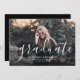 Comemore o formando com este convite personalizado de festa de formatura de fotos moderno, com a palavra "formando" em escrito branco, com a escola e o ano de graduação abaixo em letra branca sans serif. Perfeito para segundo grau ou formandos. O inverso apresenta o nome do formando e as informações da parte em texto branco em um plano de fundo preto.