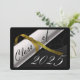 Cartão de graduação em preto e ouro com diploma e ano de graduação. O fundo é preto, com letras douradas para os convites de festa de formatura.