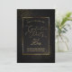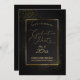 Festa de formatura preta e dourada legante - uma armação dourada envolve detalhes com um borrão de ouro brilhante. Uma combinação de caligrafia de script combinada com um texto de estilo minimalista e contemporâneo - Festa de formatura Classe 2019