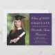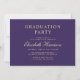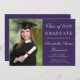 Anúncio e convite de festas roxo e ouro modernos e clássicos com uma foto do formando, seu nome e ano de classe em um roteiro elegante de ouro leve e sua universidade, major e honraria. Na parte traseira, adicione os detalhes da parte do formando.