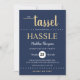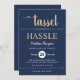 Convite à Festa de formatura de Script Dourado de Tassel Azul Rustico