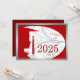 Uma silhueta de uma moça no boné e no vestido. Designs florais são usadas em segundo plano. A parte traseira do cartão são informações para o convite de festa de formatura.