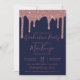 Festa de formatura Dourado Sparkle Glitter Drips Convite para rosa com pílulas de falso brilho e fundo azul marinho. Há um filtro opcional para ajudar a desativar o texto branco na parte inferior; ele pode ser desligado clicando em "personalizar mais" e excluindo essa camada. Projetado por Cedar e String. Para personalizar ainda mais, clique no link "personalizar mais" e use a ferramenta design para modificar o design. Se precisar de assistência ou itens correspondentes, entre em contato conosco em cedarandstring@gmail.com.