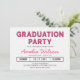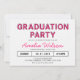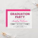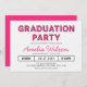 Convite de Festa de formatura moderno que inclui a palavra "Festa de formatura" contra um fundo de faixas diagonais de cinza. A placa inclui um lado de trás rosa correspondente. Personalize-o substituindo o texto do marcador de posição para adicionar suas informações. Para obter mais opções, clique no botão "Personalizar". *Observe que a Marca d'água do Zazzle que aparece na visualização de zoom NÃO aparecerá no produto impresso final. © Rosewood e Citrus